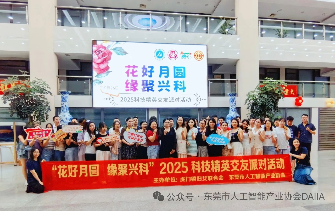 在国庆中秋双节即将到来之际,9月26日晚,由虎门镇妇女联合会指导、东莞市人工智能产业协会主办的“花好月圆 缘聚兴科”2025科技精英单身交友派对成功举办。本期交友活动共有29对青年男女报名参加,是由我会党支部继“三八”节之后组织的第二期单身浪漫约会,在美好的节日前夕相聚在兴科,把“爱”送到需要的人身边,把“情”溢满莞邑你我心间。