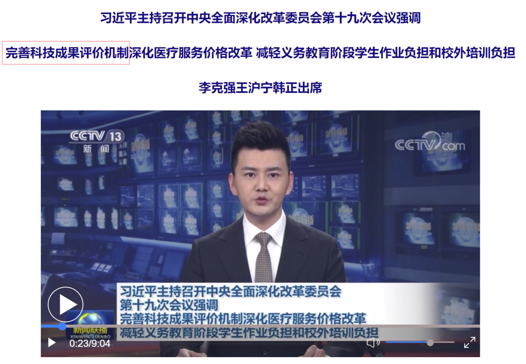 会议指出,党的十八大以来,党中央部署推进科技评价体系改革,聚焦“四个面向”的科技成果评价导向逐步确立,激励创新的环境正在形成,带动我国科技创新能力明显提升。同时,分类的科技成果评价体系尚未建立,指标单一化、标准定量化、结果功利化问题还不同程度存在。