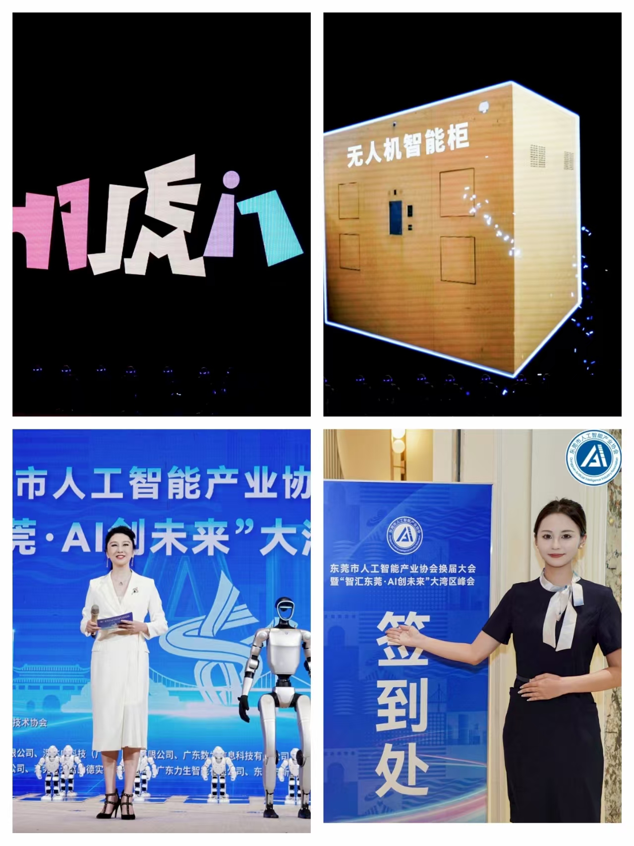 活动伊始,参会人员陆续签到入场,现场气氛热烈。典礼在震撼的开场表演中拉开帷幕—无人机编队飞行与激光雕刻技术完美结合,呈现出一场科技与艺术交融的视觉盛宴,瞬间点燃全场氛围。主持人携手宇树科技机器人登台互动,以轻松幽默的方式阐述了AI 的应用和东莞人工智能的发展业态,并由主持人介绍到会的重要领导嘉宾及大会议程。